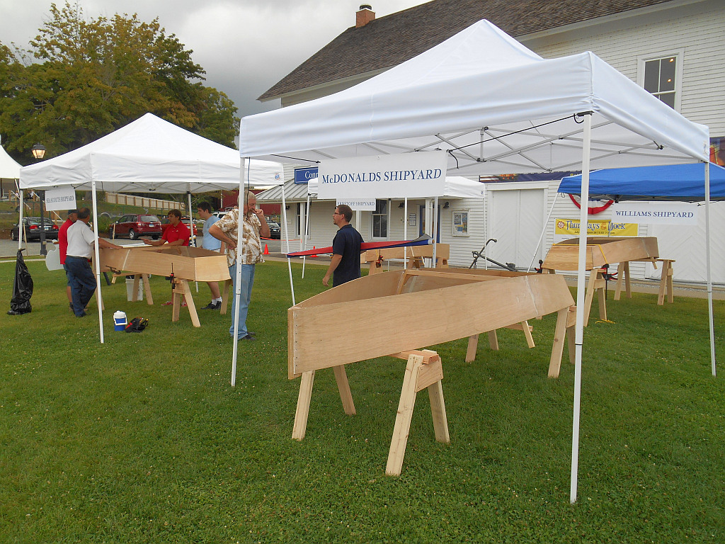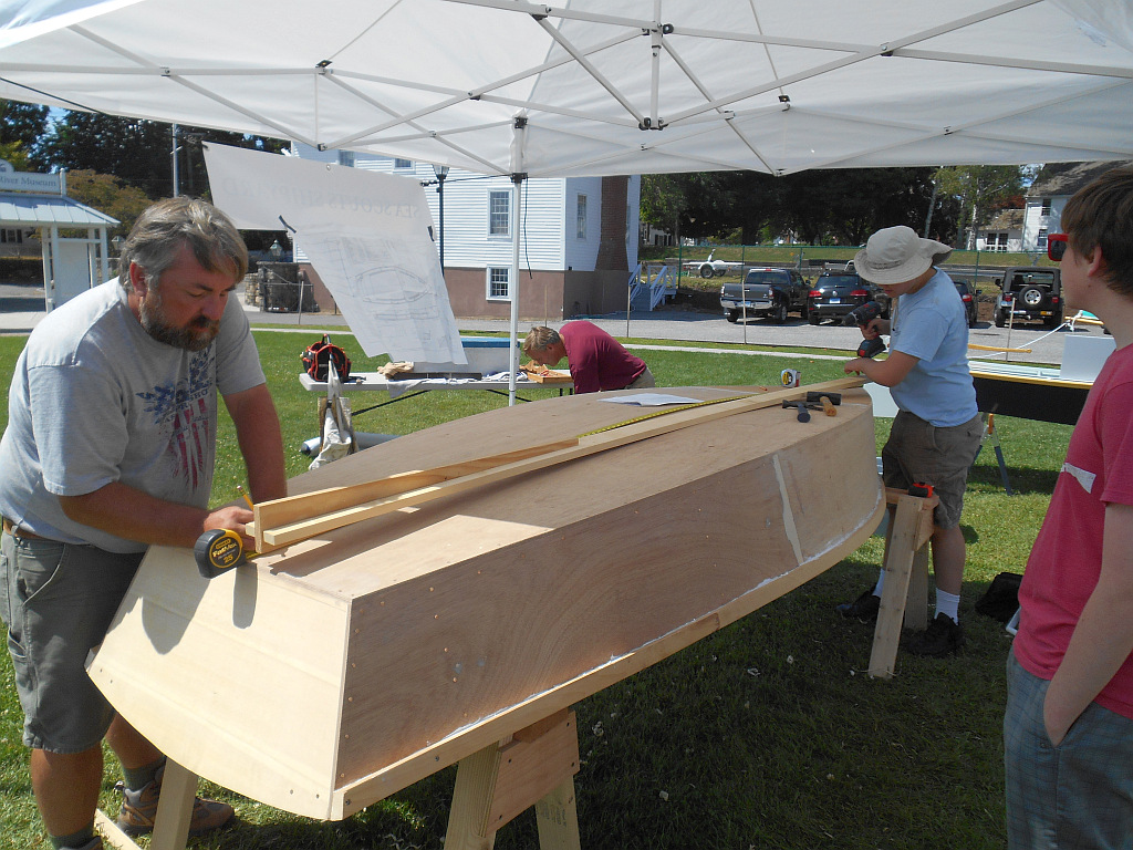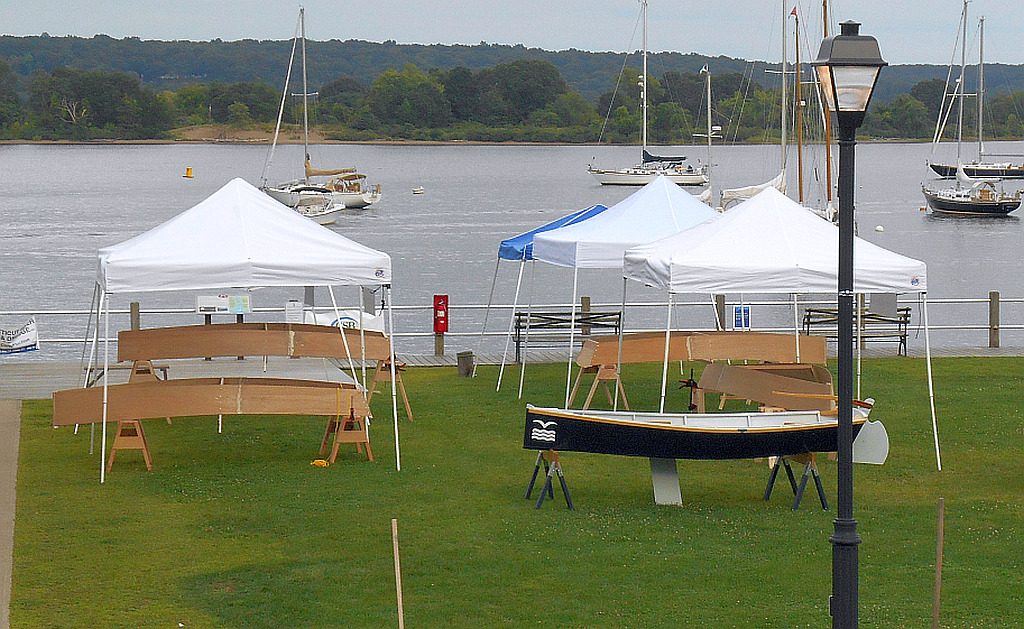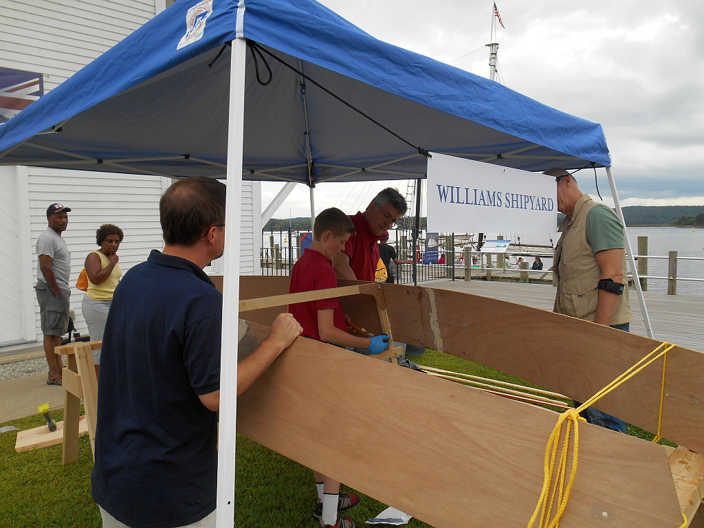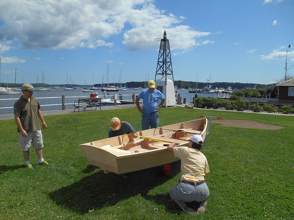 Took a week off from boatbuilding to build boats — my great friend Ray Gaulke and I were the organizers of a family boatbuilding workshop from Friday afternoon to Sunday at the Connecticut River Museum. With wonderful help from Chris Dobbs and the museum staff and some great volunteer instructors, we launched four CRM 12’s (a modified Bevins Skiff) on Sunday afternoon. The boatbuilders were skilled and enthusiastic, and we all had a great time. But I am beat –son John and I drove down to Virginia to pick up the skiff kits from the Alexandria Seaport Foundation on Monday and through cleanup today it was nonstop work.