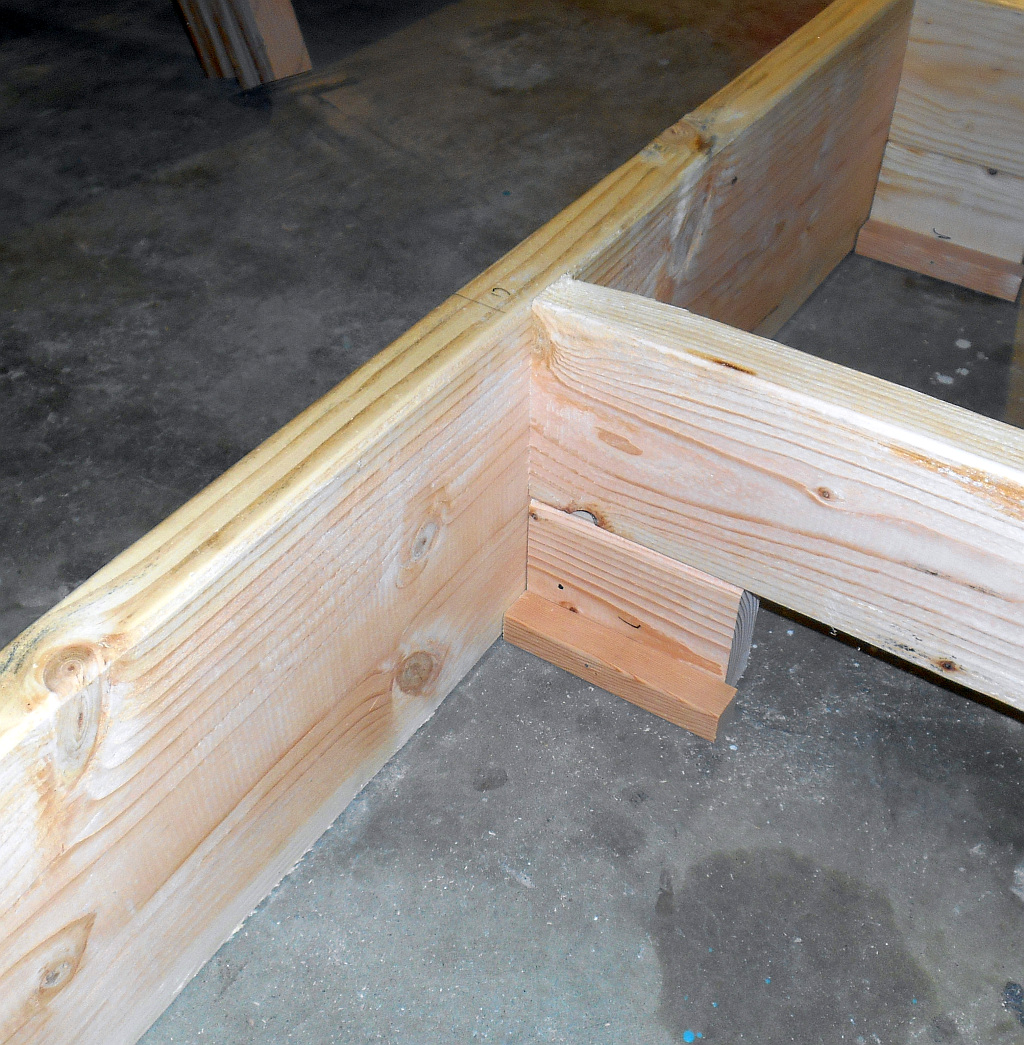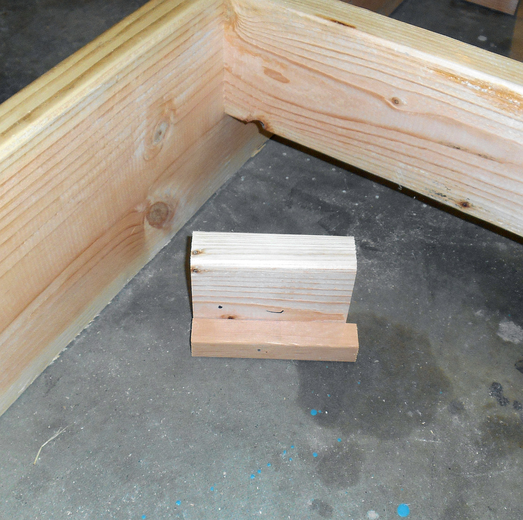 I have added one embellishment to Mark’s plan for those working in a single-man shop. As an example, frame 13 weighs something like 60 pounds and is very awkward to move around. If it was 1/8th inch down on one side and 1/8th inch up on the other, trying to horse it around, get it level and redrive the screws holding it to the frame would be impossible. So I cut all the uprights at 68 inches instead of 69, They will rest on 1-inch blocks lightly nailed to the spacers at the bottom of the cross beams. If something is off, I merely knock out the spacer, put a smaller or larger block at the bottom of the upright, and drive it home with my trusty sledge hammer.