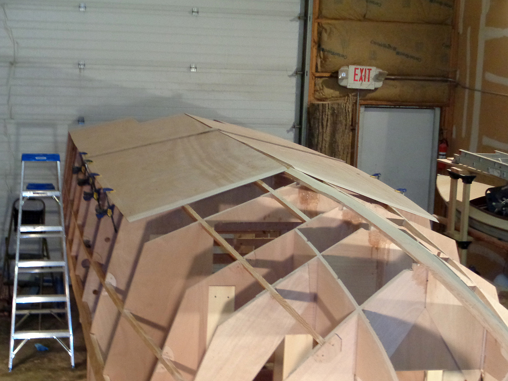 Holiday duties have slowed things down a little, but Ray and John have been helping scarf and lift, so we got a couple more planks on.