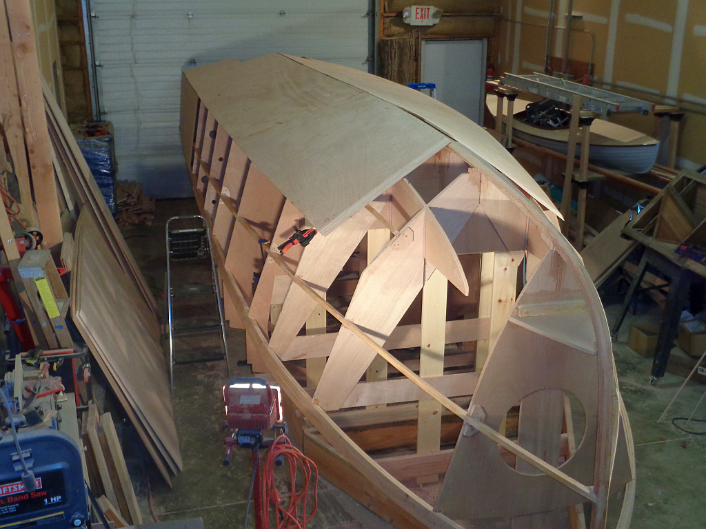 It took some big clamps and big screws, but two more planks are on the bottom, up forward where they really have some bend.