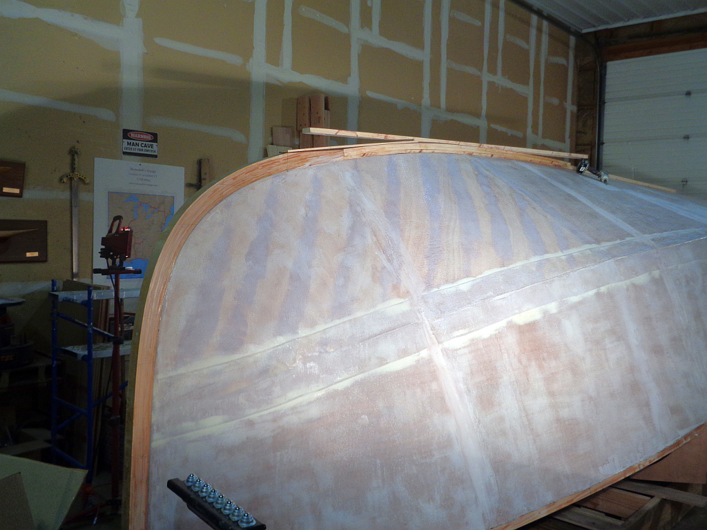 Gee, it’s too bad but I had to stop sanding for a couple days and move on to the keel. The reason is simple: once I totally fair the bottom it’s just too slippery to work on. I can get on all right, but getting off is a sort of controlled fall. The keel gives me something to grab onto.