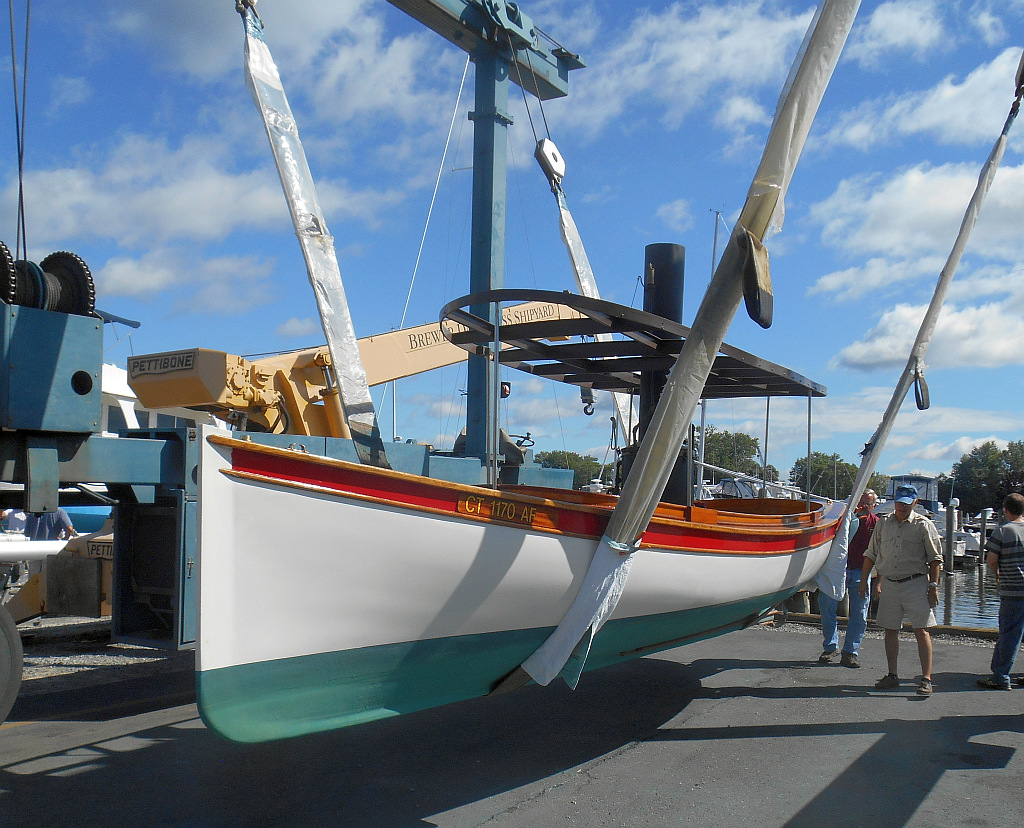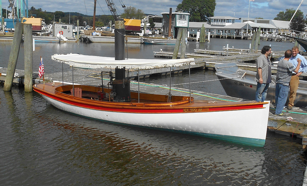 My life outside Tardis has also taken a peripatetic turn — Monday afternoon we finally launched the Osprey, a steam launch that our team of Connecticut River Museum volunteers has been working on all summer. Then on Wednesday it was up to Newport to sail the incredible trimaran Three Little Birds down to Norwalk, thanks to my old friend Pat Harris. Three Little Birds is a super high tech tri about 36 feet long with a huge racing rig. But she also has a very nifty cruising interior and the trip was quite comfortable — but long. What could have been a 10 hour, amas-out-of-the-water flight, turned into a no-wind-tide-against-us 17 hour slog, and I got home at 4 am.