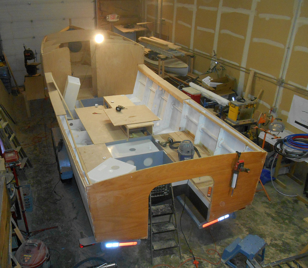 - The center section of the cockpit over the tanks themselves is going to be very tight and screwed down into hatch sealing tape. This should make it almost watertight, but in an emergency, it can be removed. It will also have an inspection hatch to get to a bilge pump located near the aft tank, since pump switches are notoriously prone to failure. So I will always have an idea of what is going on down there.