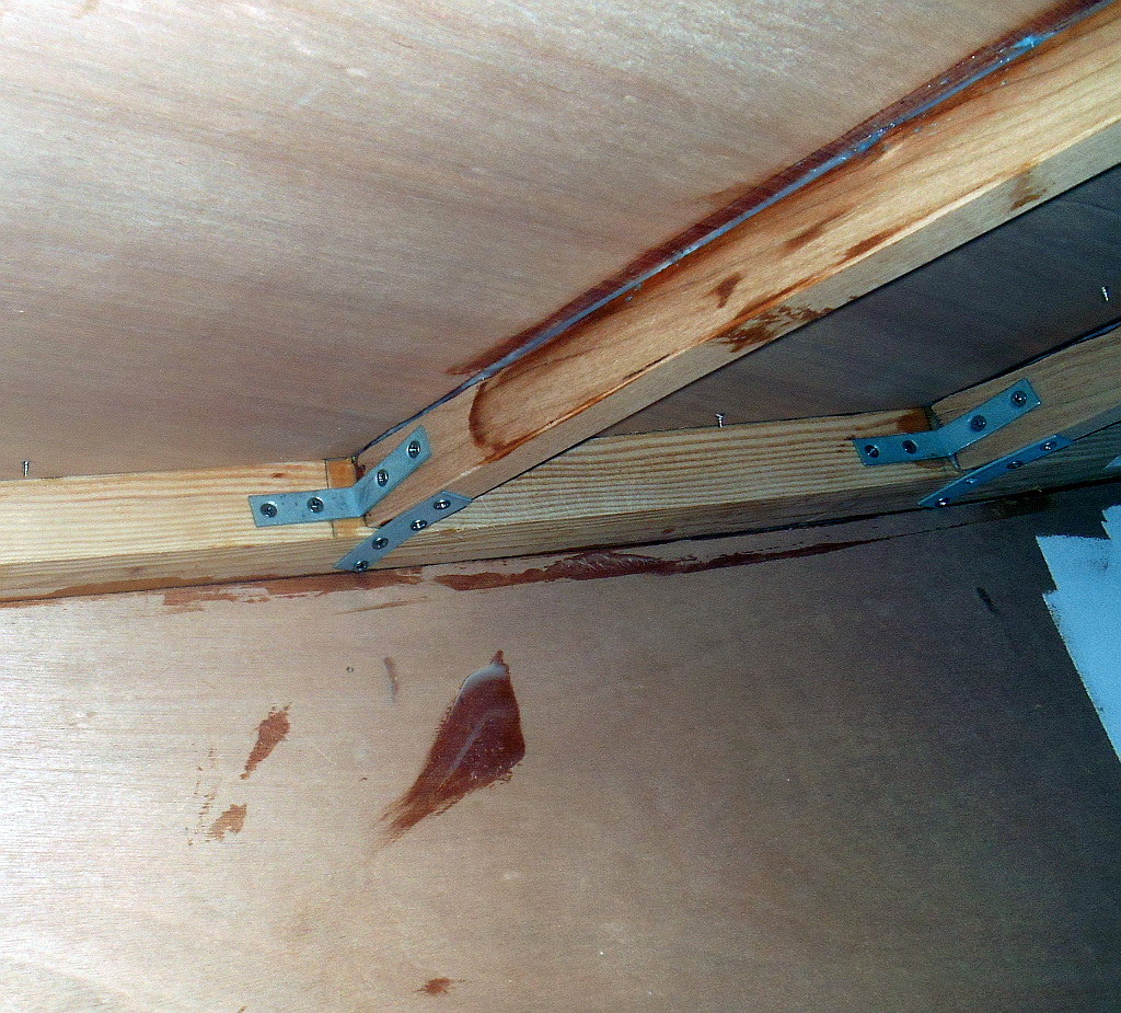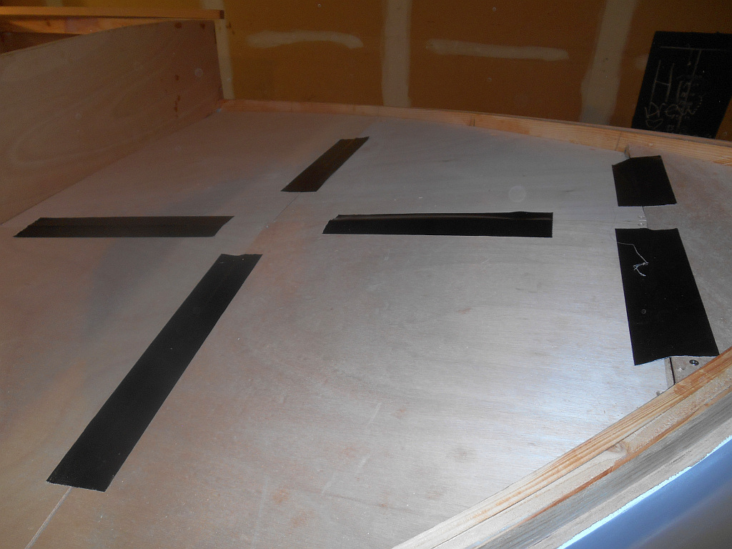 First layer of plywood lightly fastened to the beams.. By Tardis standards those seams are hairlines!