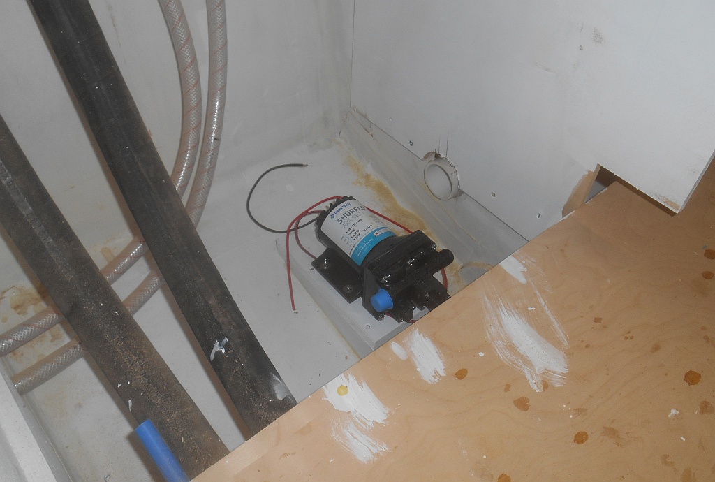 — Built a platform for the fresh water pump and installed it.