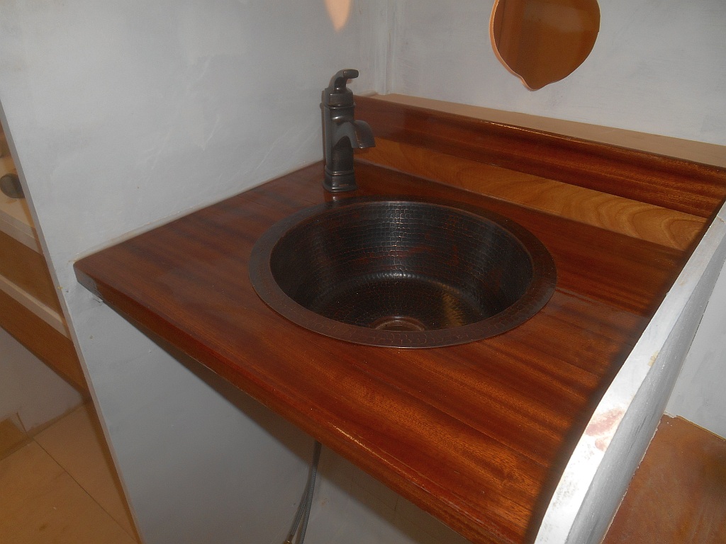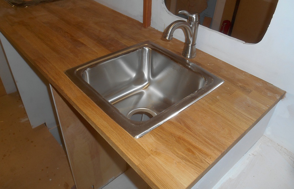 — Installed the faucets and sinks in galley and head.