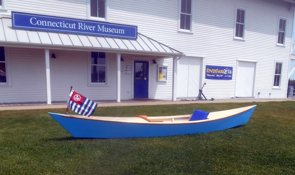 Well, not the Tardis, but the beautiful Cappy 15 kayak for the Connecticut River Museum is finally finished. It turned out to be quite a process since this is a two-tone boat and we could only apply one color per day. So my usual day was drop off the dog at day care, drive over to the CRM in Essex, work with Ray on sanding, paint and finish, back to Guilford for a couple hours on the Tardis.