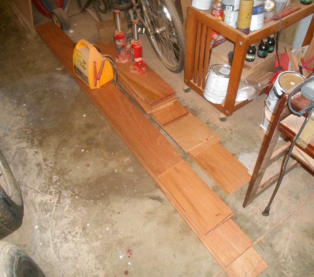 — With a huge hand from my shop neighbor Tom Tolla, John and I resawed all the cherry and mahogany for trim. A resaw is a great, big bandsaw with a wide blade. An amateur just can’t afford one. We sawed through 8-inch planks in no time at all. After a day at the thickness planer, exterior trim will begin in earnest.