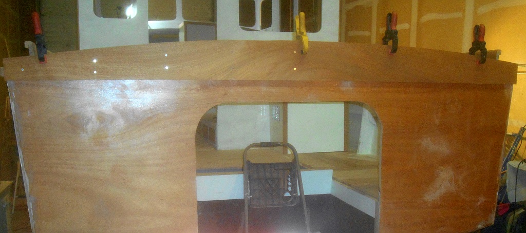 Nevertheless, I am adding 5/16 inch mahogany cladding to the transom to keep visitors happy — and because it will look spectacular when varnished.