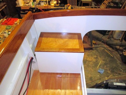 It made sense while the boat was in the shop to install the large pieces of the cabin sole, so they are in. It’s basically just a thin piece of teak and holly plywood glued to the subfloor, but altogether it makes 3/4 inch of thickness and seems very solid.