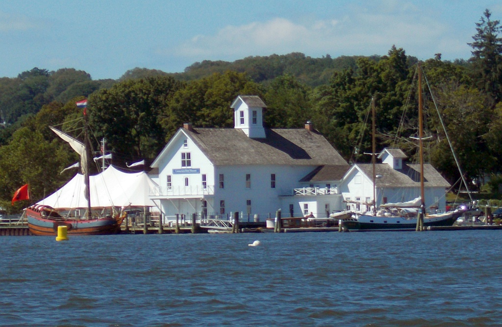 Connecticut River Museum from the water. Old boat is a beautiful replica of Adrian Block’s Onrust, the first European ship up the Connecticut River in 1614.