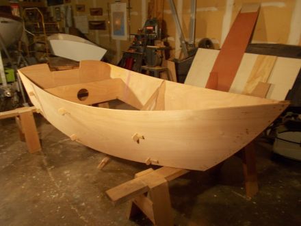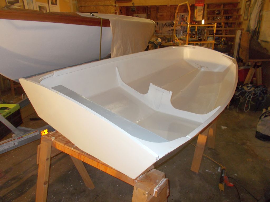 — Offcut, the new dinghy for Tardis, is awaiting a can of interior paint for the final coat, and gunwale guards. This will be the last project out of the shop, since I won’t need her until June. All the sanding I had to do after screwing up the fairing was worth it, since my neighbor Wally paid me the wooden boat builder’s highest compliment: “Wow, that finish looks like fiberglass!”
