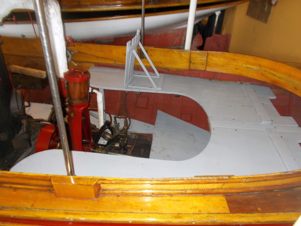 — The floorboards in the foreground are from the Connecticut River Museum’s steam launch Osprey. I have been refurbishing and re-engineering the floors and seating system all winter, since the old system was starting to get a little dangerous. Some of the floors and seating are original to the boat, which makes them well over 125 years old, so they were in need of some TLC.