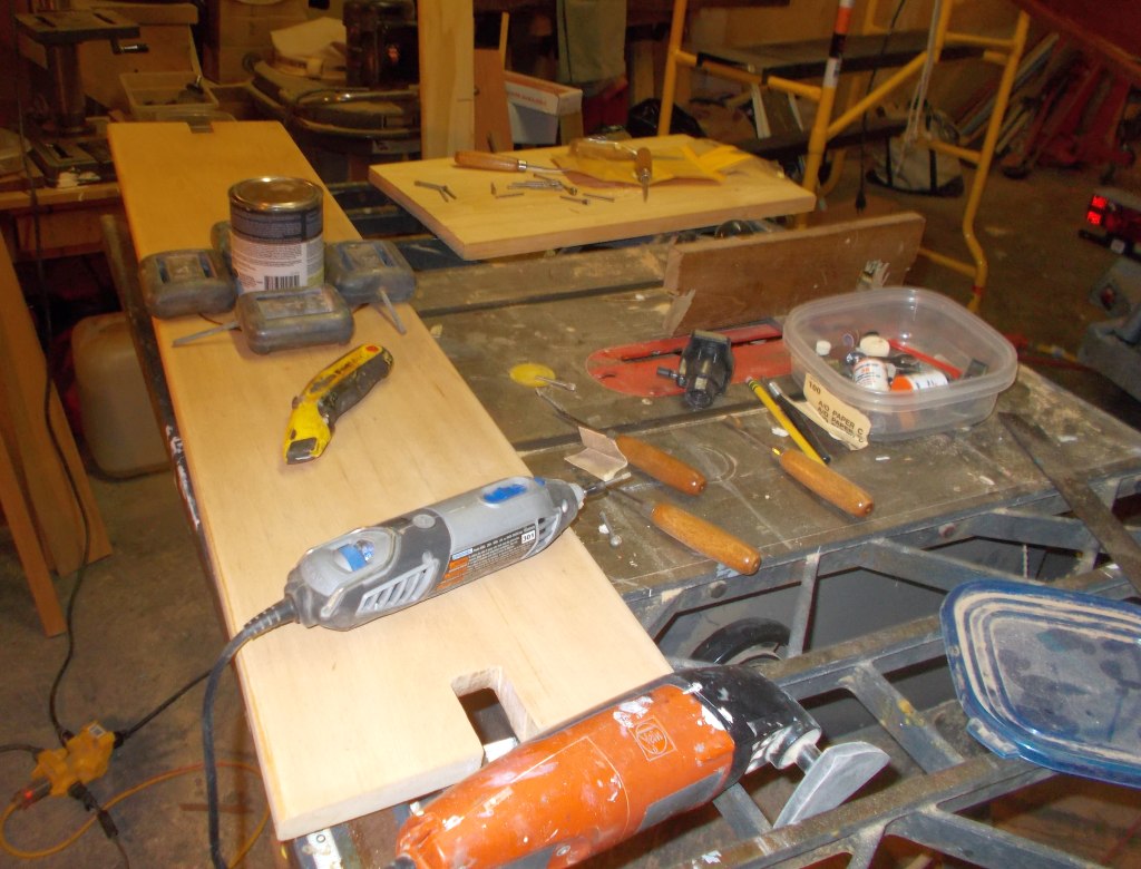 But the really time-intensive item was the hull finish. Ray came back from Egypt last Saturday, and it was a hot, extraordinarily humid day. We just couldn’t get the two-part paint we wanted to use to “kick” right and the initial finish was really bad. So we tried a one-part “Kelly Green” that made the boat look like one of those shiny green hats people wear to the St. Patrick’s Day parade.
