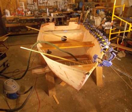 The only fly-in-the-finish so to speak is that the boat did not sell at Riverfare, although it did get a great reaction from the crowd. As we anticipated, the chances that someone would need a little skiff that very night were pretty slim. So we will auction it off over the summer and see what happens.