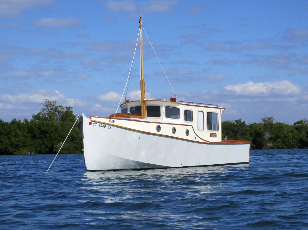 The work getting ready for Florida was mostly cosmetic.  Every surface that can be stepped on (cockpit, foredeck, cabin top, deckhouse roof) is now painted with Interlux Interdeck deck paint — a great product that just grabs your shoe and prevents slipping.  The cockpit and foredeck are Bristol Gray lightened up with 20% white and the cabin tops are white.