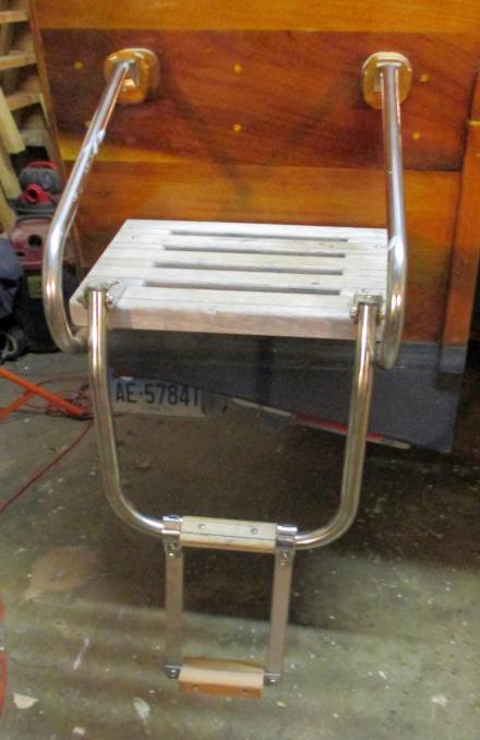 I am cruising a lot by myself on the trip, and am very cautious.  But if through some crazy chain of events I ever fall off the boat, I need to be able to get back on.  I actually have tried it using the swim step, but the first lunge upward is a big one.  So I got some bimini fittings and stainless steel bar stock and put together an extension step.  Plus if I just know I have to go into the water to fix something, I have an emergency rope ladder that gives me a good place to hang onto for the first step.