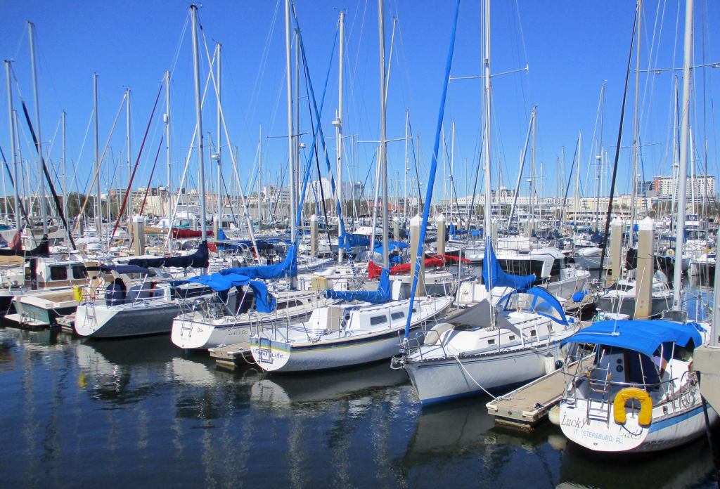 This is our February home in St. Petersburg at Harborage Marina. A great slip in a quiet corner of the marina. The ramp goes up to a seawall with fantastic views of St. Pete and also leads to a shower area and laundry.