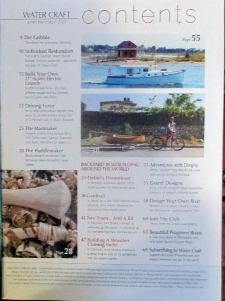 After escaping from Florida (more in the cruise later), I arrived home to a stack of mail and in it was a copy of Water Craft, a British magazine that is sort of like WoodenBoat, but more oriented for small craft, builders and designers. When I opened to the contents page THERE WAS TARDIS!