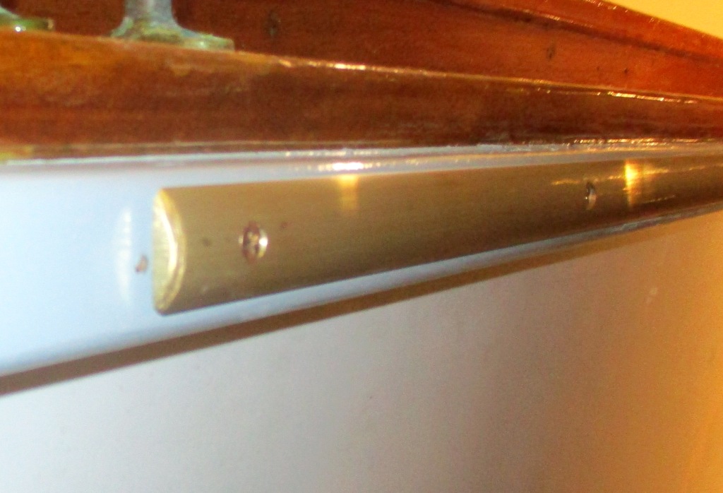 So I went ahead with a project that had been planned since our first trip to Florida — brass caps on the rubrails. Docks in non-tidal areas are pretty much just pilings and a short finger reaching out to the boat. There is no way to avoid rubbing against them, and as a notoriously poor close-quarters boat handler, I do so frequently. Even in fancy marinas there isn’t much dock protection. I went into one for gas and saw the fuel attendant wince as we pulled into the dock. “There’s that screw sticking out that I’ve been meaning to fix all week. Right at your rubrail,” he remarked as we examined the gash.