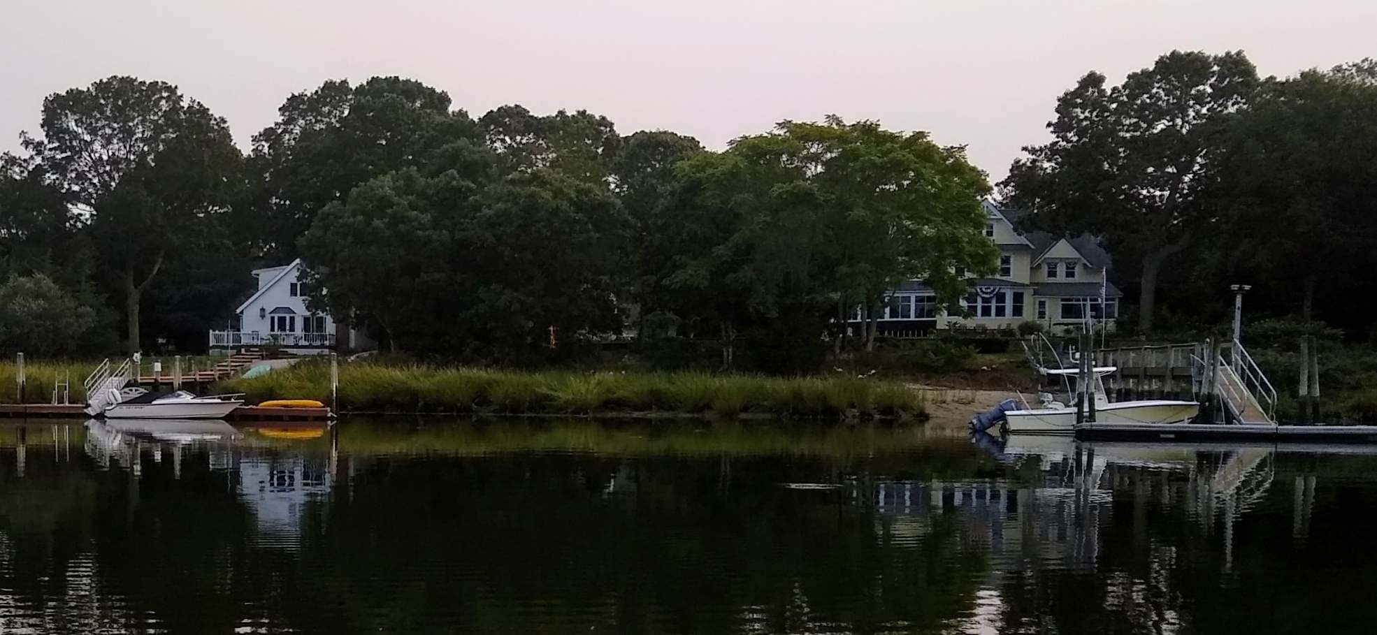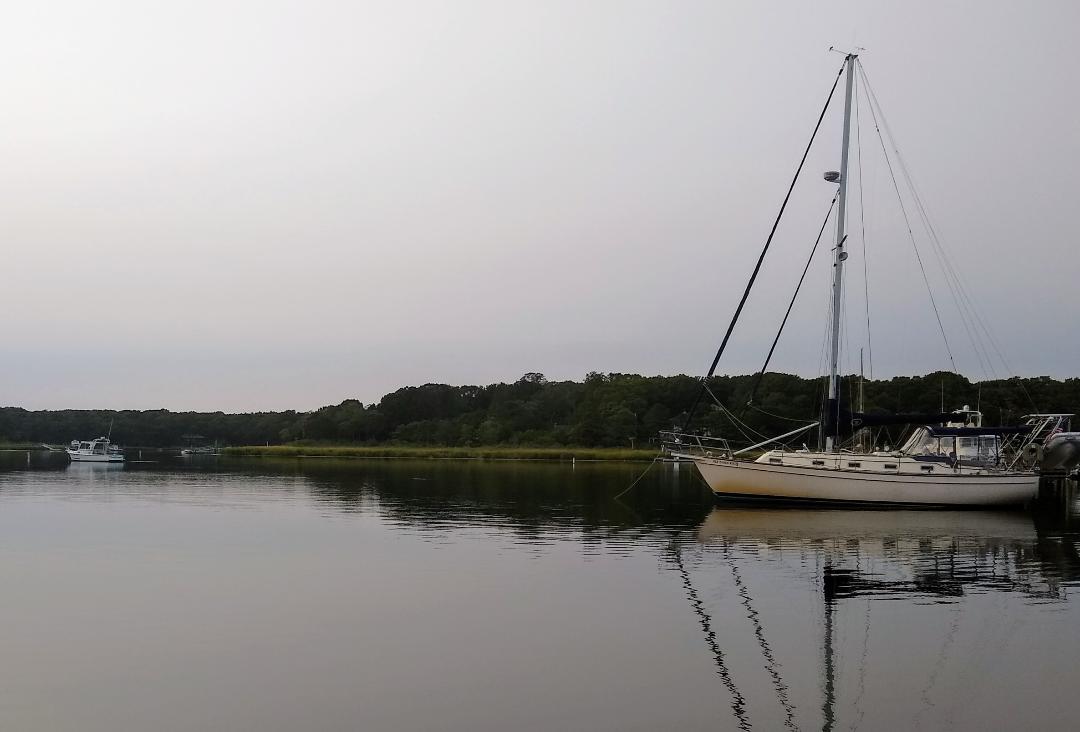 — Mattituck Inlet on the North Fork of Long Island used to be a winding six mile creek with lots of fishing boats, a couple run-down marinas and a really nice place at the head of navigation called Strong’s. As the Hamptons have moved up into the North Fork, it has just totally changed with huge houses and docks all the way up. What’s called the Federal Anchorage, a dredged area at the top of the creek is still pristine though, and always calm since your normal jet ski’s and motor boats that ignore all speed restrictions really have to slow down or run into the low bridge that ends the creek.
