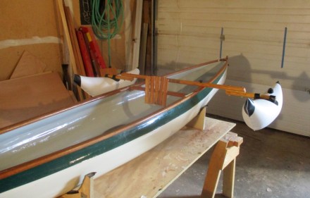 Anyway, the Mark II version of the canoe featured a crosspiece right across the boat. It worked decently, cut the outriggers were a little shy of the water and when I paddled, I hit the tips. So for Mark III I lowered the floats a bit and moved them back about 7″ from the seat.