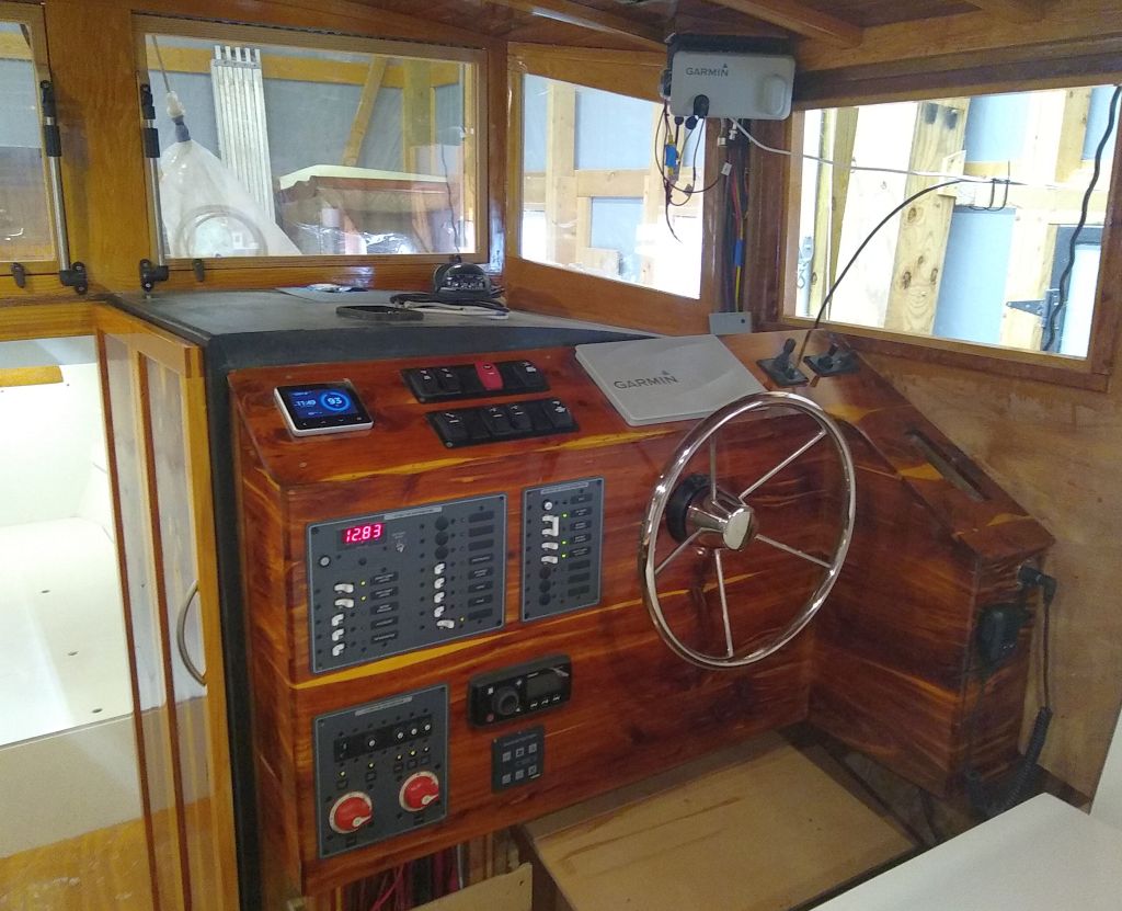 — The boat has been perfectly adapted from Mark’s plans for warm-weather cruising. Every one of the custom windows opens and the beautiful cockpit doors will allow for total airflow through the boat.