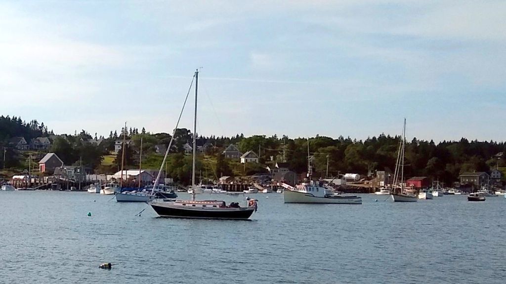 The trip back was just as good, starting with a stop on a mooring at Winter Harbor Yacht Club for groceries. A beautiful, friendly old-fashioned yacht club– $25 per night. Then onto a mooring at Bartles Landing on Mt. Desert arranged by my friend Steve White. Totally peaceful and after the trip north and a crazy trip to Southwest Harbor for gas, I needed the decompression.