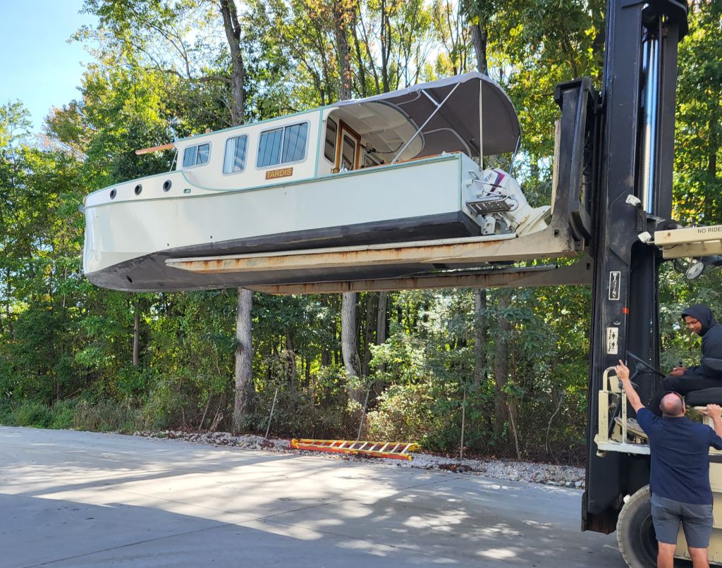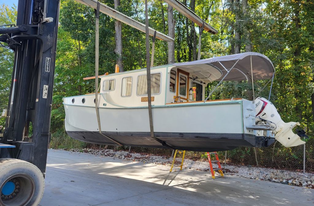 It’s time for Tardis to head south and with a Viking cruise to Norway, Scotland and England taking up most of September, it was just too much to get to Carolina in one jump. So Tardis is now safely in a rack storage marina just north of Baltimore. She was trucked down after a slight delay due to one of the near-miss tropical storms that came through Connecticut this fall, and we went right into the water.